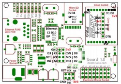 Ich verwende zum testen gerne das Itead Board, da es recht günstig in der Anschaffung (13$) ist und alles nötige fertig bestück hat. Außerdem ist es insgesamt kleiner als ein ArduinoUno mit Ethernetshield.